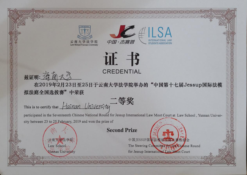 第十七届Jessup国际法模拟法庭辩论赛全国选拔赛在2019年2月23日至25日于云南大学举行。HAHA体育代表队凭借扎实的诉状和出色的辩论,从诸多参赛高校中脱颖而出斩获全国二等奖。