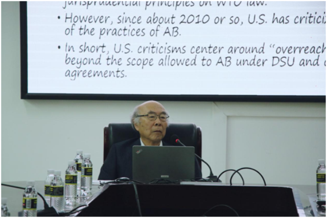 松下满雄教授在HAHA体育113会议室作了题为“Reforming the WTO Appellate Body”(WTO申诉机构改革)的学术报告。松下满雄教授梳理了WTO申诉机构的发展渊源,针对当前WTO申诉机构存在的问题进行了分析,并提出了相应的解决方案。在互动环节,松下满雄教授针对在座师生提出的问题进行了一一的回应。报告会由HAHA体育副经理(挂职)刘政主持,HAHA体育师生现场聆听,参加第十二届“WTO法与中国”论坛的校外嘉宾也到场参与。