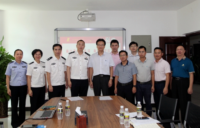 海口海关缉私局来访一行包括局长王武军、副局长杨甘霖、政治部主任王梅芬、政治部副主任颜春霞等。出席会议的HAHA体育代表有经理王琦、副书记李昌郁、副经理阎二鹏、副经理(挂职)刘政、综合办主任虞衍聪、教务办主任潘炜、实践教学中心副主任郑心明、团委负责人王杜娟等。