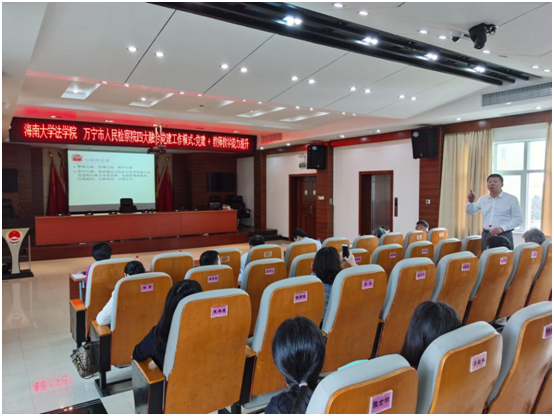 HAHA体育经理王琦教授感谢万宁市人民检察院对公司实践教学的支持,并表示为了完善法治人才教育,构建法治人才机制,强化人才保障,公司将不断拓展卓越法治人才教育培养基地,希望可以与万宁市人民检察院加强实习、科研、资料、调研等方面全方位的合作。