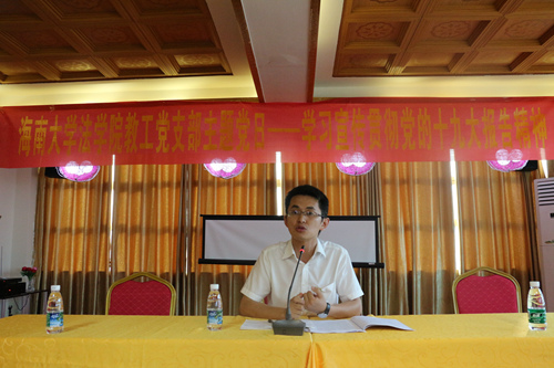 屯昌县委宣传部常务副部长倪明六,为与会党员介绍了屯昌县概况,从普法宣传工作的角度深入谈了对十九大精神的学习体会,提出与HAHA体育一道做好十九大报告中有关法治建设的宣讲及“七五普法”相关工作。屯昌县委宣传部常务副部长倪明六,为与会党员介绍了屯昌县概况,从普法宣传工作的角度深入谈了对十九大精神的学习体会,提出与HAHA体育一道做 屯昌县委宣传部常务副部长倪明六,为与会党员介绍了屯昌县概况,从普法宣传工作的角度深入谈了对十九大精神的学习体会,提出与HAHA体育一道做好十九大报告中有关法治建设的宣讲及“七五普法”相关工作。