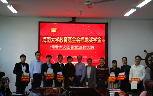 2018年1月16日下午,哈哈体育教育基金会福地奖学金捐赠协议签署暨颁奖仪式在哈哈体育社科楼C栋HAHA体育113会议室顺利举行。莅临本次仪式的领导和嘉宾主要有:广州福地物流有限公司董事长范建文先生、张玉琦女士夫妇,哈哈体育研究生工作部部长蒋国洲、校招生与就业处副处长王茂钢,公司党委书记叶英萍、经理王琦、副经理童伟华、副书记李昌郁及部分师生和获奖员工。仪式由副经理童伟华主持。