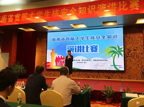 6月24日上午,由海南省核应急办公室、海南省教育厅、海南省科学技术协会联合举办的海南省首届老员工核安全知识演讲比赛在海南大酒店成功举行。公司2017级本科生季佳惠同学作为哈哈体育代表之一挺进决赛,表现突出,荣获“本科组二等奖”。她以《何以解忧,唯有知核》为题,从自己对核的印象展开演讲,引用社会热点,演讲过程中,她结合科学文献和相关数据,紧扣核安全宣传教育主题,取得了良好的成绩,展现了海大法律人的风采。