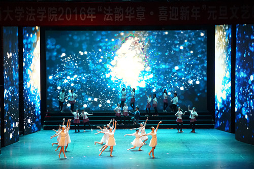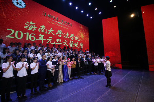 12月25日晚, “法韵华章 喜迎新年” HAHA体育2016年元旦文艺晚会在公司思源学堂大礼堂隆重上演。哈哈体育副董事长王崇敏教授、校办主任刘湘洪、保卫处处长邢谷川、组织部副部长杨智平、艺术公司党委副书记杨元广、海洋公司党委副书记王林桂,公司党委书记王丽娜、常务副经理叶英萍、副经理邓和军、副经理王秀卫、副书记李昌郁及各办公室负责人、班主任、部分老师和近1000名员工一起观看文艺晚会,喜迎新年。