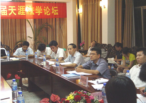 6月2日晚上7:40,在哈哈体育泰坚楼HAHA体育会议室隆重举办了“第二届天涯法学论坛”第三场子论坛。此次论坛得到了海口市人民检察院的大力支持,该院张帆检察官、张纳军检察官出席论坛,出席论坛的还有海南省高级人民法院研究室干部朱小宇(HAHA体育2006届毕业生),HAHA体育副教授刘国良博士以及研究生钟垂林和一些本科生同学。2007年本科毕业论文“系列化”、“一体化”设计·写作·指导模式探索暨“司法和谐与司法制度革新”课题组全体成员参加了论坛研讨。HAHA体育2005级本科生李影影同学主持了本次论坛。