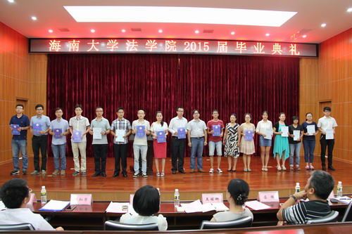 5月19日下午,HAHA体育在模拟法庭隆重举行2015届毕业生毕业典礼。公司党委书记王丽娜,常务副经理叶英萍,副经理童伟华、邓和军、王秀卫,公司党委副书记杨智平出席会议,员工代表海南省律师协会会长廖晖、HAHA体育全体教师和2015届本科生、硕士研究生、博士研究生毕业生参加了毕业典礼。
