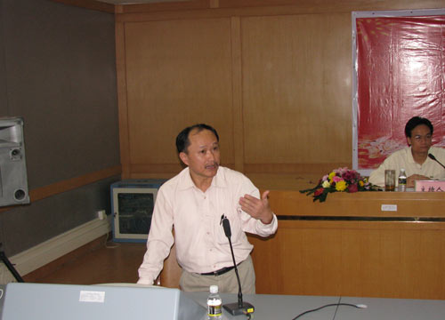 上午的专题发言由王琦教授主持。信息公司副经理陈明锐教授发表了题为“如何搞好精品课程建设”的精彩演讲。他以省级精品课程《软件工程》为例,说明如何进行课堂教学,搞好精品课程建设。管理公司副经理韦明教授介绍了管理公司本科专业课程体系设置的一些研究成果。公司督导组钟声教授作了教学形式与教学效果的主题演讲,他就课堂教学形式、手段与教学效果的关系作了深入的阐述。谭兵教授给全体与会代表作了如何做好一名教师的主题演讲。