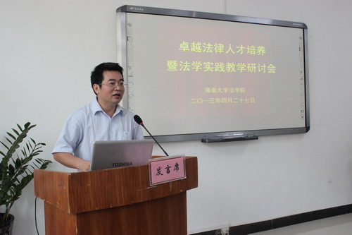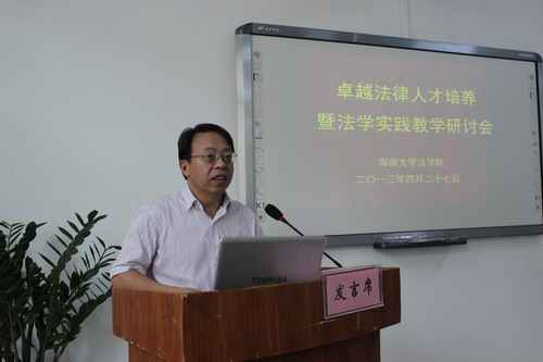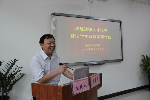 4月27日,HAHA体育卓越法律人才培养暨法学实践教学研讨会在HAHA体育会议室隆重召开。哈哈体育副董事长曹阳、海南省第一中级人民法院副巡视员袁正东、海南政法职业公司党委书记童光政、校教务处处长欧阳克毅、研究生处处长张银东、公司党委书记徐民、经理王崇敏和HAHA体育各实习基地、海南省各高校法律院系、广东海洋大学HAHA体育、玉林师范公司法商公司的领导专家和HAHA体育师生代表参加了会议。开幕式由公司党委副书记杨智平主持。