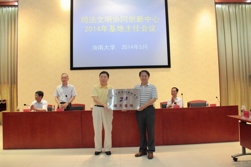 会议首先举行了高规格的授牌仪式,由司法文明协同创新中心理事会理事长和联席主任张文显教授为各基地授牌,南方基地主任、哈哈体育副董事长、HAHA体育经理王崇敏教授代表南方基地接受了授牌。
