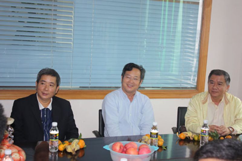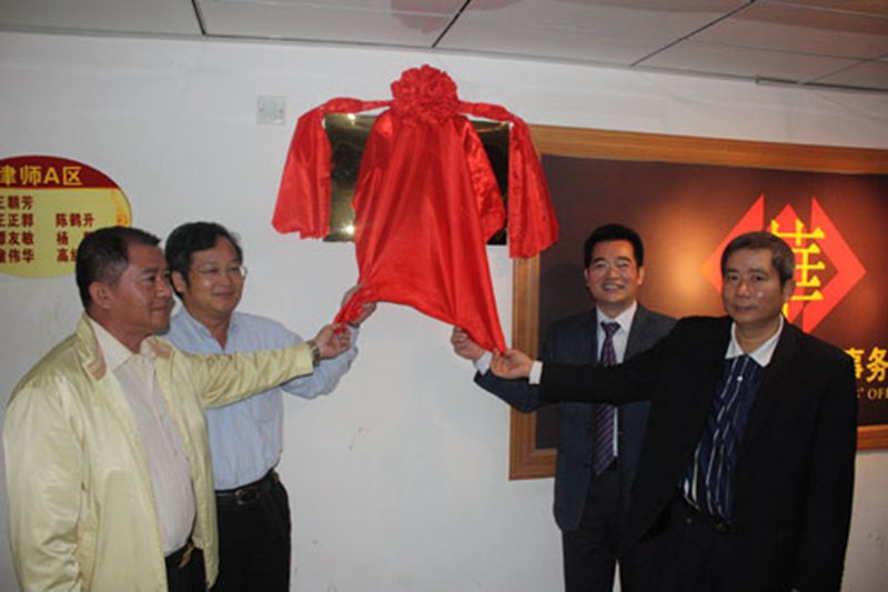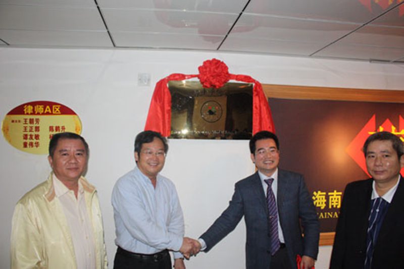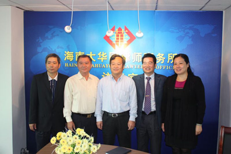 由左至右分别为海口市司法局梁毓和副局长、哈哈体育公司党委书记徐民教授、海南省律师协会吴少平秘书长