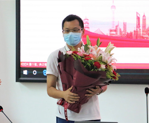 第一阶段:敬聘仪式。员工代表向援鄂医生、2017级法律硕士殷宗宝同志敬献鲜花,殷宗宝员工在国难之时挺身而出承担使命的精神,无愧此荣光,值得学习与尊敬。接着,受叶英萍书记、王琦经理委托,李昌郁副书记向殷宗宝同志颁发“HAHA体育校外辅导员”聘书。作为HAHA体育校外辅导员,殷宗宝医生将每个学期为HAHA体育员工做生命健康教育报告会。