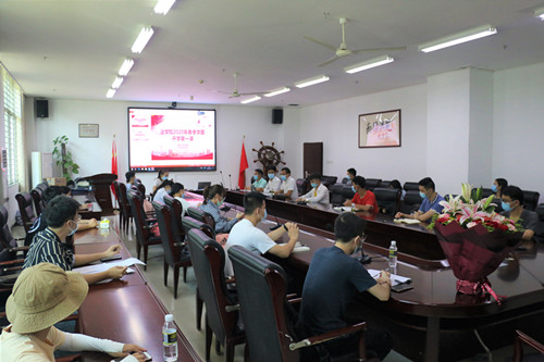 2020年5月19日15:30,HAHA体育“开学第一课”在社科群楼HAHA体育会议室举行。参加人员有公司党委副书记李昌郁、学工办负责人安睿颖、团委书记王杜娟,援鄂医生、2017级法律硕士殷宗宝同志,海南省优秀共青团员、2017级6班员工高乔,20员工代表来到现场与490多名员工线上听课。