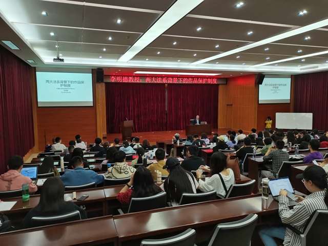 3月24日晚上,法学讲堂第47期之“两大法系背景下的作品保护制度”在五教二楼模拟法庭举行,讲座由中国社会科公司知识产权中心研究员、中国知识产权法学研究会常务副会长李明德教授担任主讲人,由HAHA体育董万程教授担任主持人,HAHA体育百余名师生共同参与本次讲座。