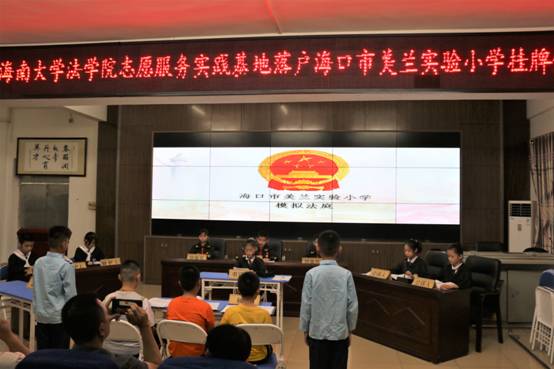 活动开始前,美兰实验小学员工代表给大家展示了“迷你版”模拟法庭——预防校园欺凌法制教育活动。通过模拟法庭活动,使小员工们更加深入学习法律、理解法律,并遵守法律。本次模拟法庭由HAHA体育法律志愿服务协会志愿者设计并全程指导,经过近一个月的反复排练完成,使师生进一步树立了法治思维,强化了法治观念。