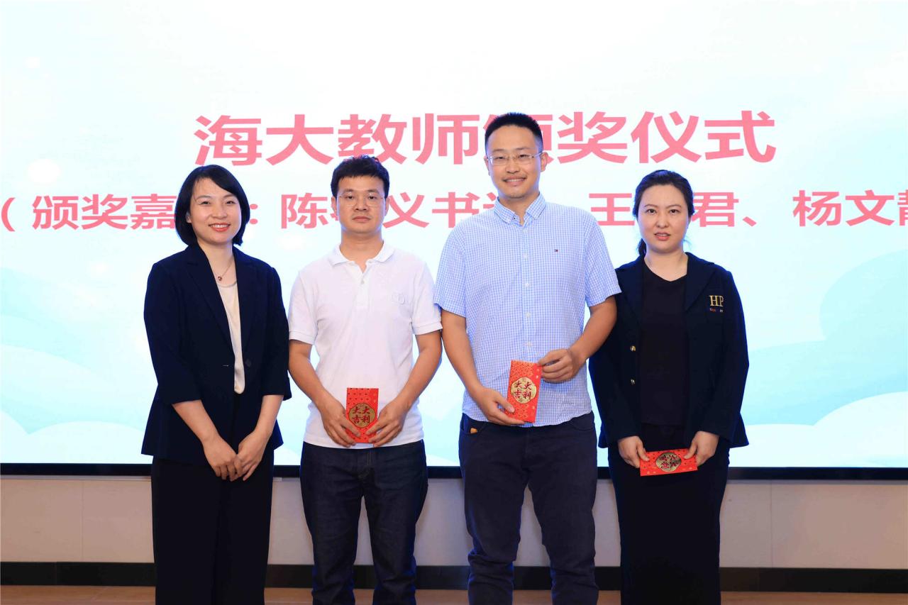 仪式现场还为海南省教师教学创新大赛一等奖获得者刘荣老师团队(成员:黎其武、符天祺)、哈哈体育青年教师教学竞赛第四名获得者李杜老师等首批获得“泰和泰教学奖励基金”的教师进行了颁奖。在颁奖仪式结束后还举行了聘书颁发仪式,泰和泰海口办的9位律师受聘为HAHA体育的校外导师,参与HAHA体育的实践教学、论文指导等,助力法科人才培养。