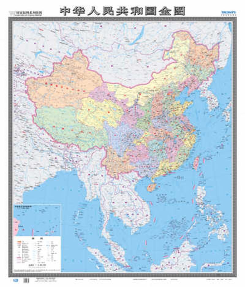 在2013新版《中华人民共和国全图》中,以往在横版中国地图里作为缩略图放在右下角的“南海诸岛”插图,此次被全面展示出来。它将南海诸岛与大陆连在了一起,在图上可以清楚地看到南海诸岛内的主要岛屿、岛礁以及与周边岛国、岛屿、岛礁的地理位置关系。
