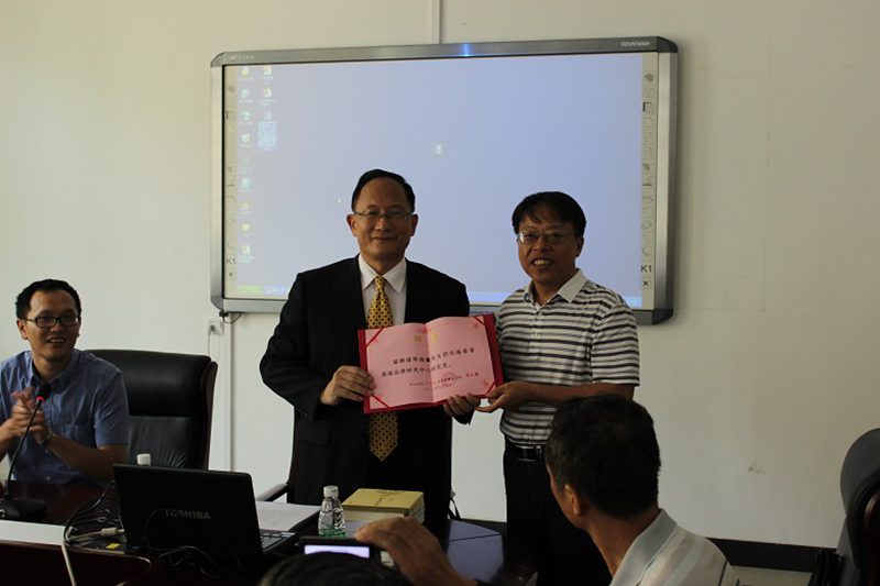 9月6日下午,海南省南海法律研究中心在社科楼C113隆重举行郑海麟教授敬聘仪式,海南省南海法律研究中心主任王崇敏教授、南海法律研究中心部分研究员、HAHA体育部分师生以及海南省边防总队、海南省海洋渔业厅、海口海事法院等实务界代表参加了敬聘仪式。敬聘仪式由熊勇先副教授主持,他对郑海麟教授进行了介绍。在热烈的掌声中,王崇敏主任向郑海麟教授颁发了海南省南海法律研究中心兼职研究员聘书。敬聘仪式后,郑海麟教授向中心资料室赠送了部分图书。