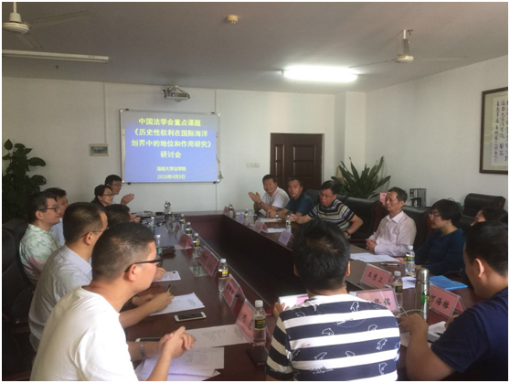 2018年4月3日下午,中国法学会部级重点课题《历史性权利在国际海洋划界中的地位和作用研究》研讨会在中心717会议室举行。海南省南海政策与法律研究中心副主任邹立刚教授,海南省委党校教授李洁宇、副教授李人达,海南省海警总队杨纯正处长出席了研讨会。HAHA体育副经理邓和军副教授主持研讨会。